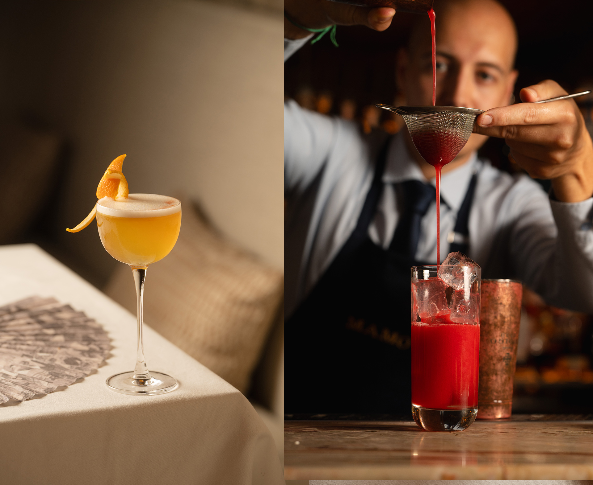 Notre talentueux mixologue vous concoctera un de nos cocktails classiques revisités : Grappa artisanale infusée de réglisse, de lavande séchée ou de citron de Menton, la Margarita a la truffe, ou encore le Lavendar’fizz… Les amateurs de Negroni se régaleront de la version signature de Mamo! De superbes cocktails d’inspiration italienne, à déguster en compagnie de bons amis ou simplement après une journée de travail, sur des airs de musique italo-américaine pour un parfait début de soirée…